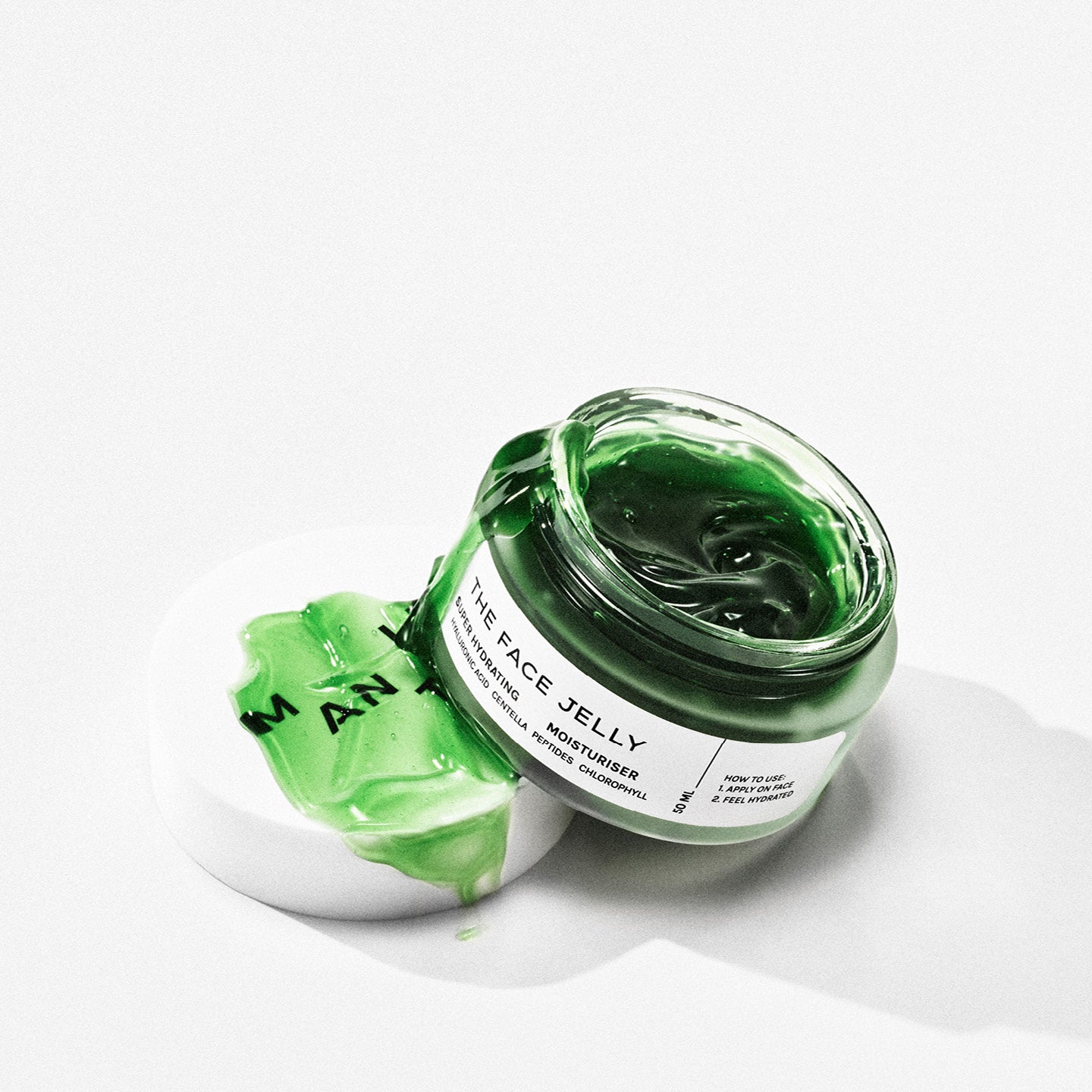 The Face Jelly is a lightweight, ultra-hydrating gel cream. Its non-comedogenic formula, enriched with hyaluronic acid, centella, peptides + chlorophyll (which gives the jelly its green colour and a mega-dose of vitamins), plumps, refreshes and quenches thirsty skin, leaving juicy results.